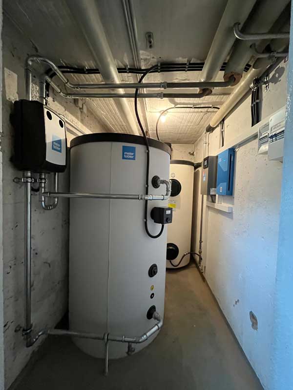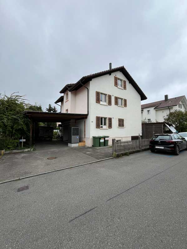 Die bestehende Heizung wurde mit einer aussenaufgestellten Luftwasser-Wärmepume ersezt, welche in der Vorfahrt platziert wurde. Dafür wurde der Grenzabstand unterschritten und ein Nährbaurecht Grundbuchlich eingetragen. Das MFH verfügt über 3 Wohnungen und einem Gewerberaum im Sockelgeschoss. Für das Gebäude wurde ein GEAK erstellt und Fördergelder vom Kanton eingefordert.