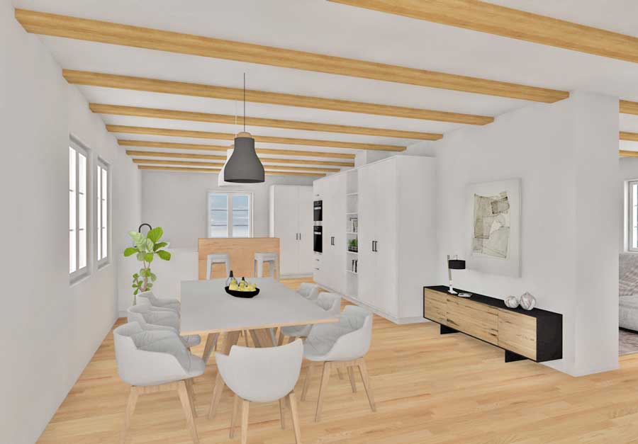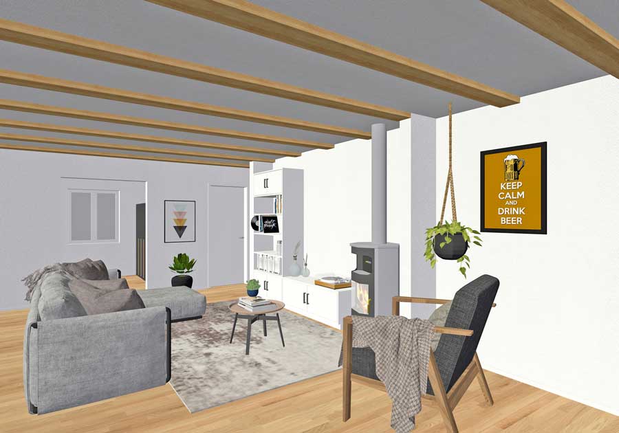Machbarkeitsstudie für den Ausbau eines bestehenden Dachgeschosses zu einer modernen Wohneinheit mit zusätzlichem Büro und Schlafbereich.