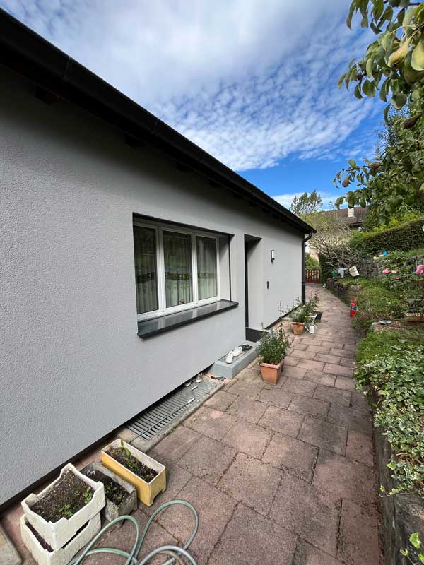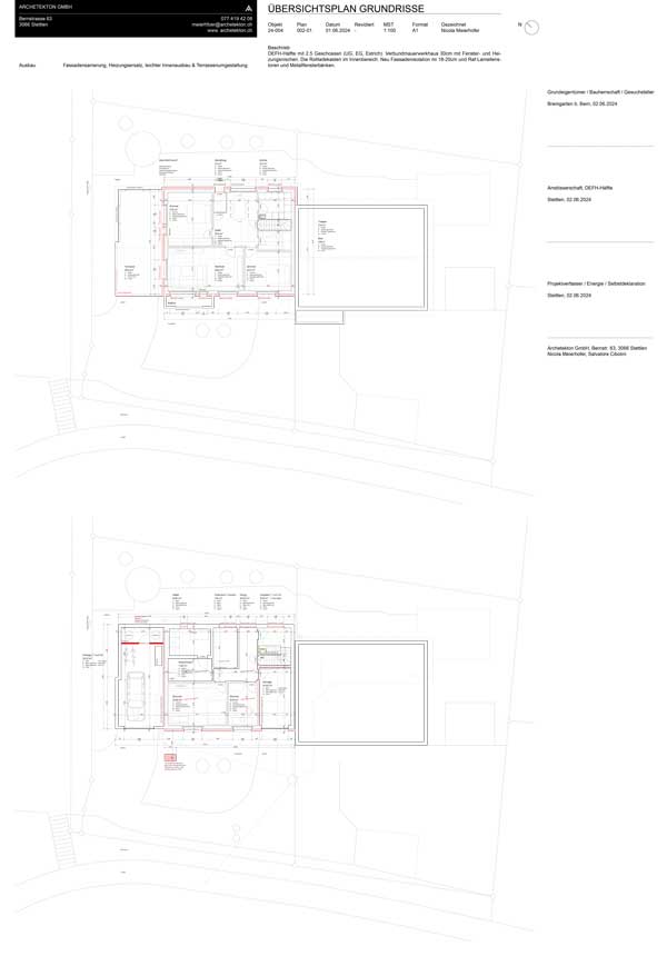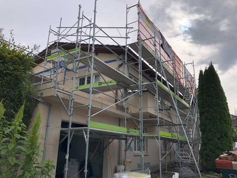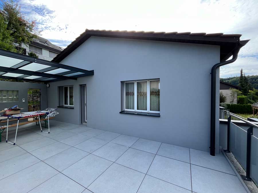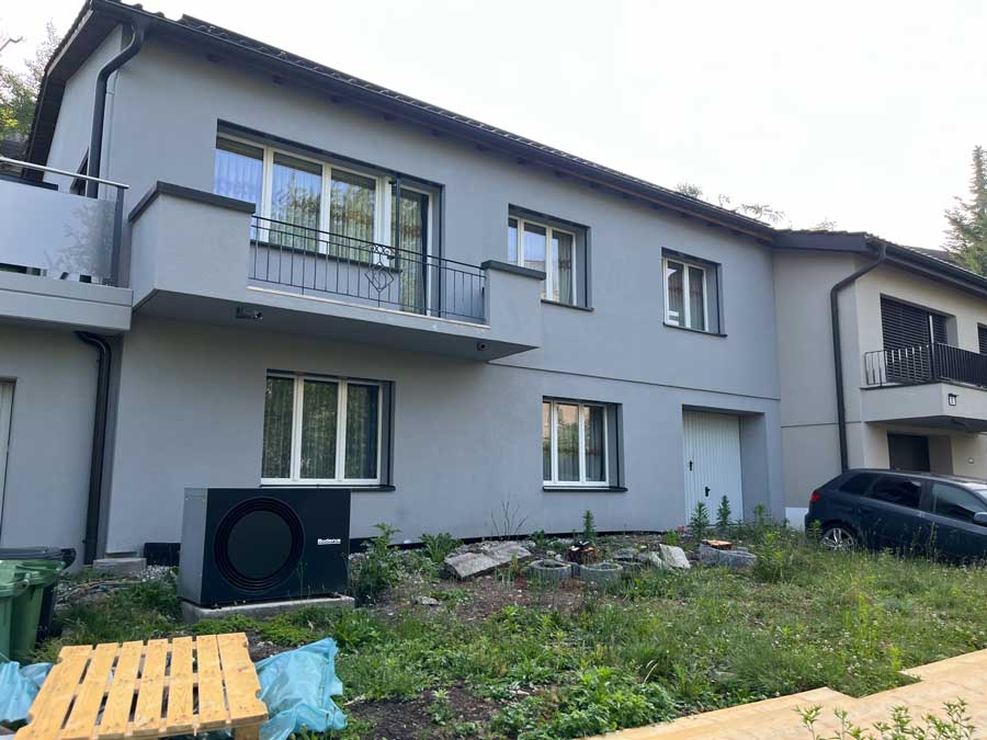 Auf Grund von einem Wasserschaden und überalteter Haustechnik haben sich die Eigentümer entschieden das Gebäude zu ertüchtigen. Es handelt sich um eine Doppeleinfamilienhaus-Hälfte in Bremgarten bei Bern. Das Gebäude ist am Hang gebaut und verfügt über ein Sockelgeschoss, ein Erdgeschoss und ein unbeheizten Erstich. Der Aussenraum ist auf verschiedenen Ebenen rund um das Haus angesiedelt und bietet viel Potential. Die Gebäudehülle wurde bis auf die Fenster und den Boden im Sockelgeschoss komplett erneuert und isoliert. Die gesamte Haustechnik wurde ersetzt und erneuert, so auch die gesamten Elektroleitungen. Die bestehende Öl-Heizung und der Öl-Tank wurden entfernt und durch eine Luft-Wasser-Wärmepume ersetzt. Das Gebäude erhielt eine PV-Aufdachanlage und ein neues Gartensitzplatz Vordach.