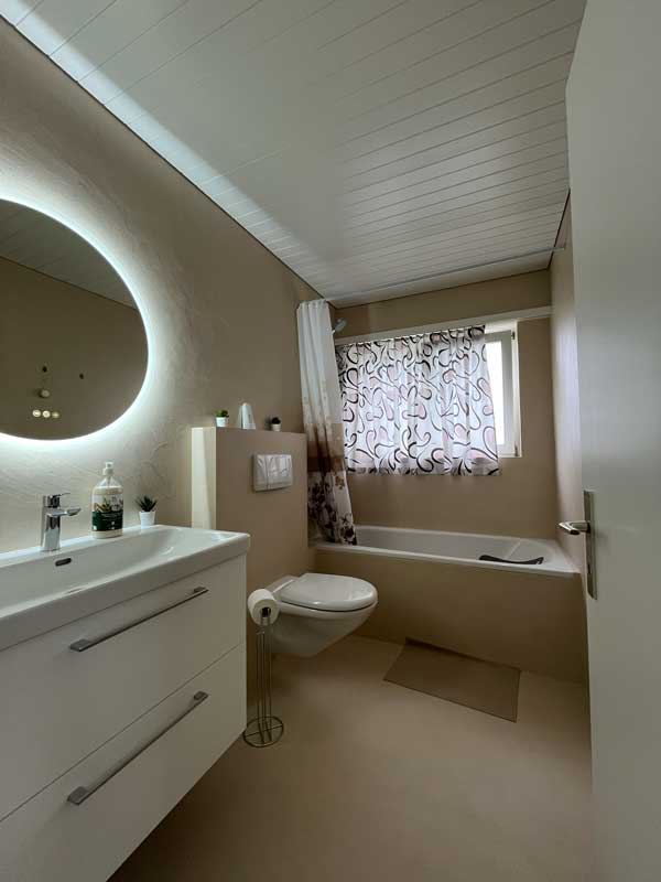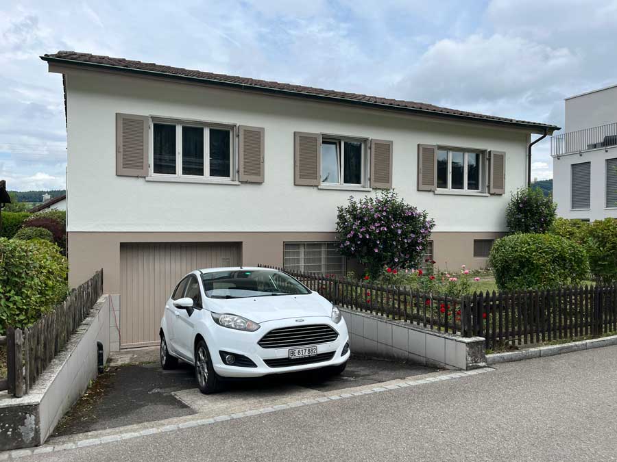 Das freistehende Einfamilienhaus verfügt über ein Untergeschoss, ein Hochparterre und ein Erstich. Das Gebäude wurde leicht Saniert um darin ein WG-Wohnkonzept anzusiedeln. Dafür wurden die bestehenden Parkierungsmöglichkeiten massvoll erweitert, damit alle Ihre Fahrzeuge unterbringen können. Das vorher von einer Person bewohnte Eigenheim. Wird nun von 5 Personen zusammen bewohnt mit geteiltem Bad, Essraum und Küche sowie Nebenräumen. Der Garten bietet nach wie vor viel Grünraum mit Pergola, Gartenhaus und Erschliessung.